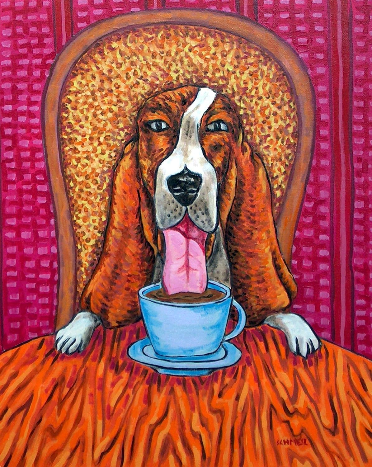 Amazon Com Basset Hound Dog At The Cafe Coffee Shop Signed Art Print Handmade Products