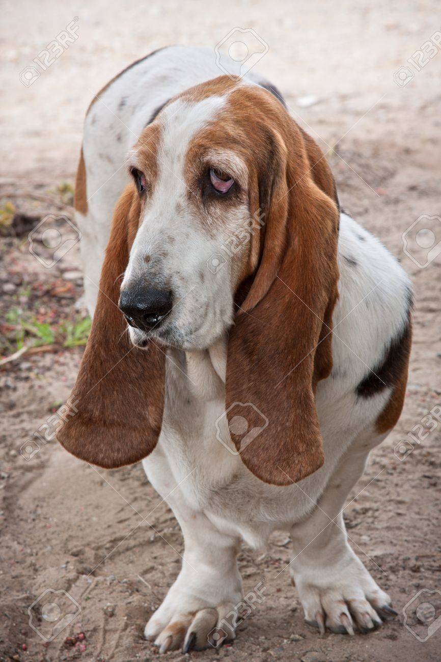 Brown And White Basset Hound Standing Looking Lost Sad And Alone Stock Photo Picture And Royalty Free Image Image 17105048